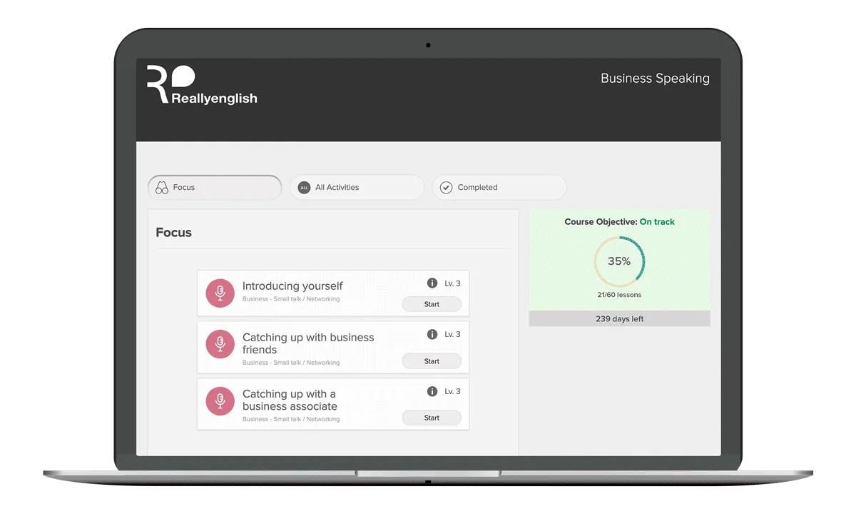 The Business Speaking lesson content can be customized into shorter courses aligned with specific curricula and program requirements.